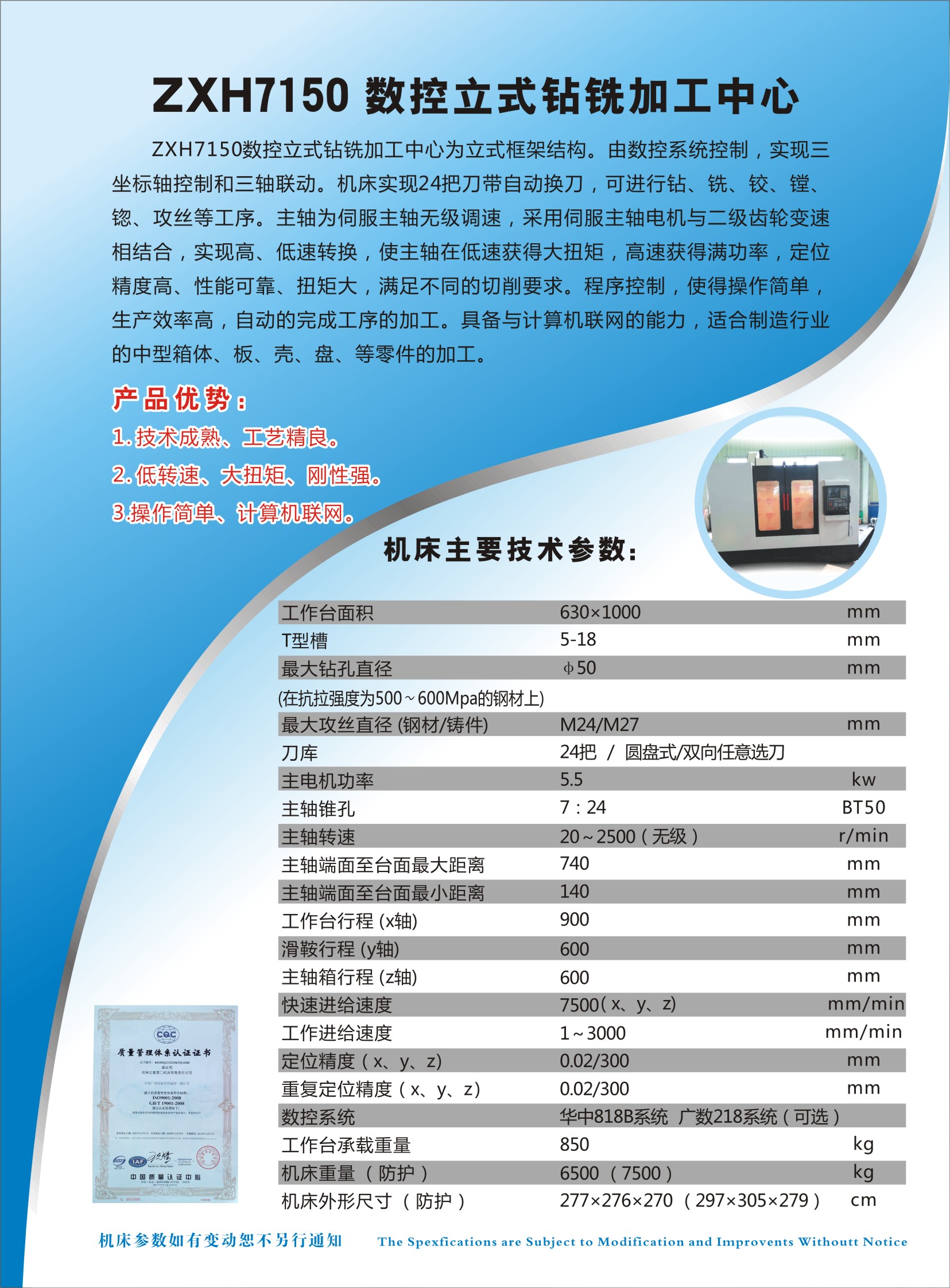 桂林二機(jī)數(shù)控科技有限責(zé)任公司 數(shù)控鉆銑中心 ZXK7150