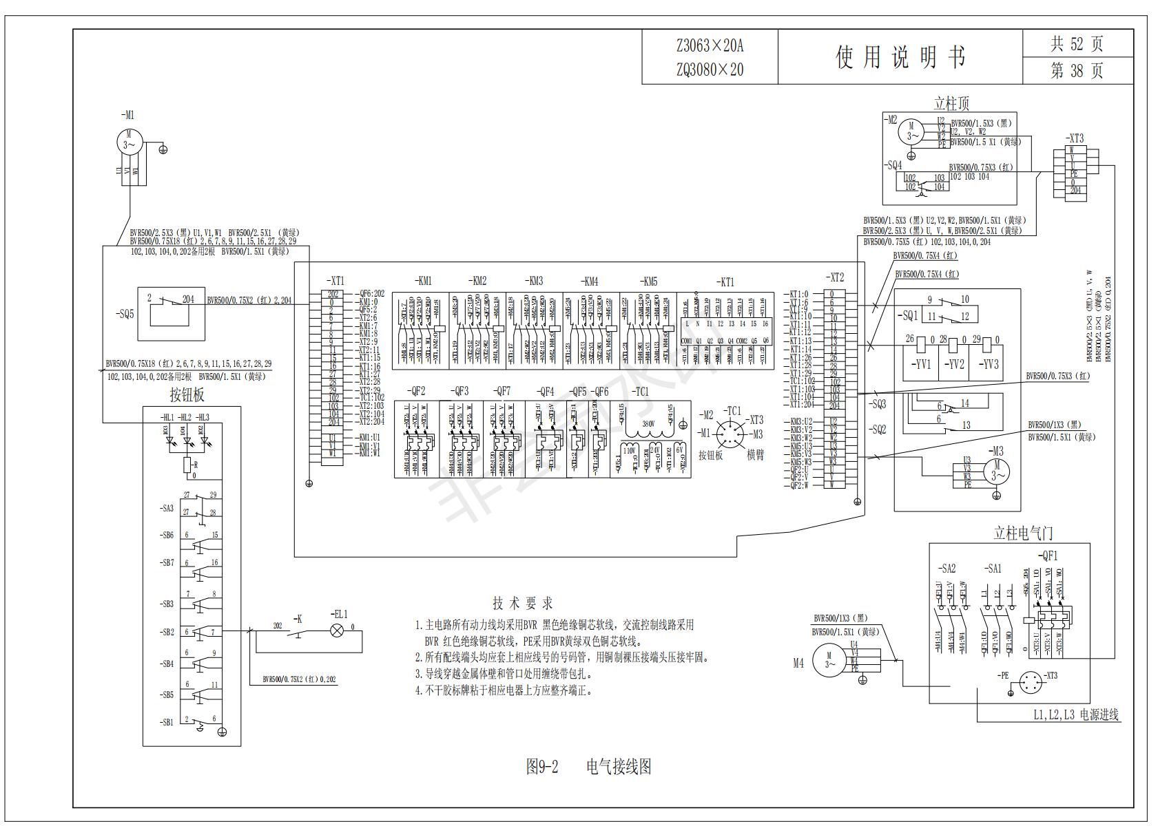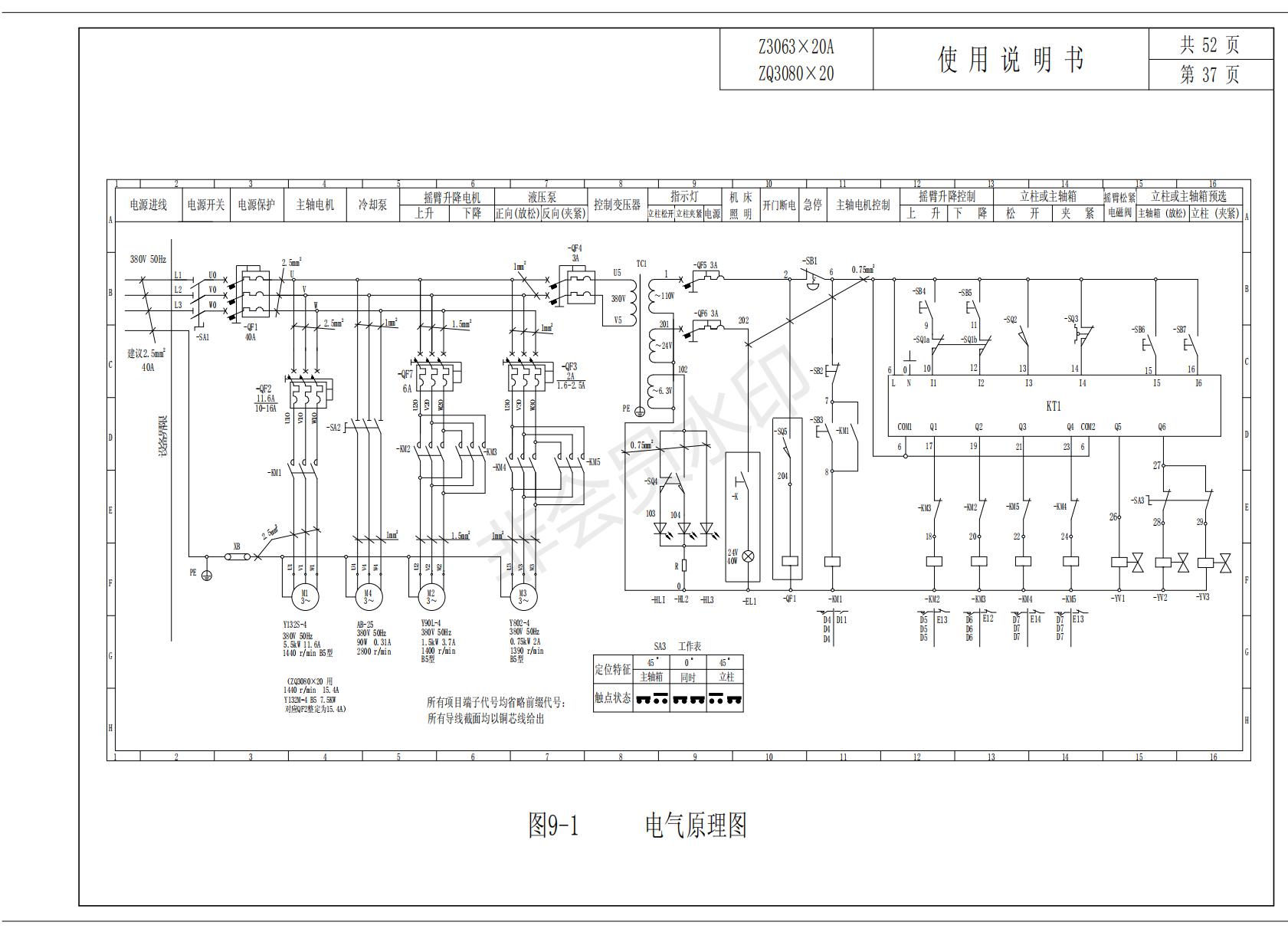 桂林二機(jī)搖臂鉆床Z3063X20 ZQ3080X20 電路圖